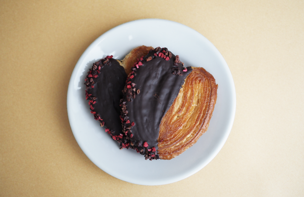 サクサクでバリバリっとした食感に芳香な発酵バターが香るパルミエに、ダンデライオン・チョコレートのタンザニア産カカオを使用したチョコをコーティングしました。表面のカカオニブの爽やかな酸味がアクセント。ギフトにもピッタリなハート型です。