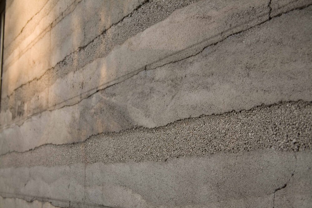 富士川の砂と土を積層させた版築壁は、陽の移り変わりにより、土の堅さと柔らかさの表情を刻一刻と変化させながら風景に溶け込みます。また、屋根に使われている吉野杉を生きている素材と捉え、ほとんど無垢のまま加工せず、びっしりと並べた上から押さえつけるだけで作られています。そして富士の湧水が滾々と注がれる水盤は、夏は涼しげなせせらぎを、冬はあたたかな陽の光を受け、時に建物の陰影を水面に映し込みながら、四季折々の姿で人々を楽しませてくれます。