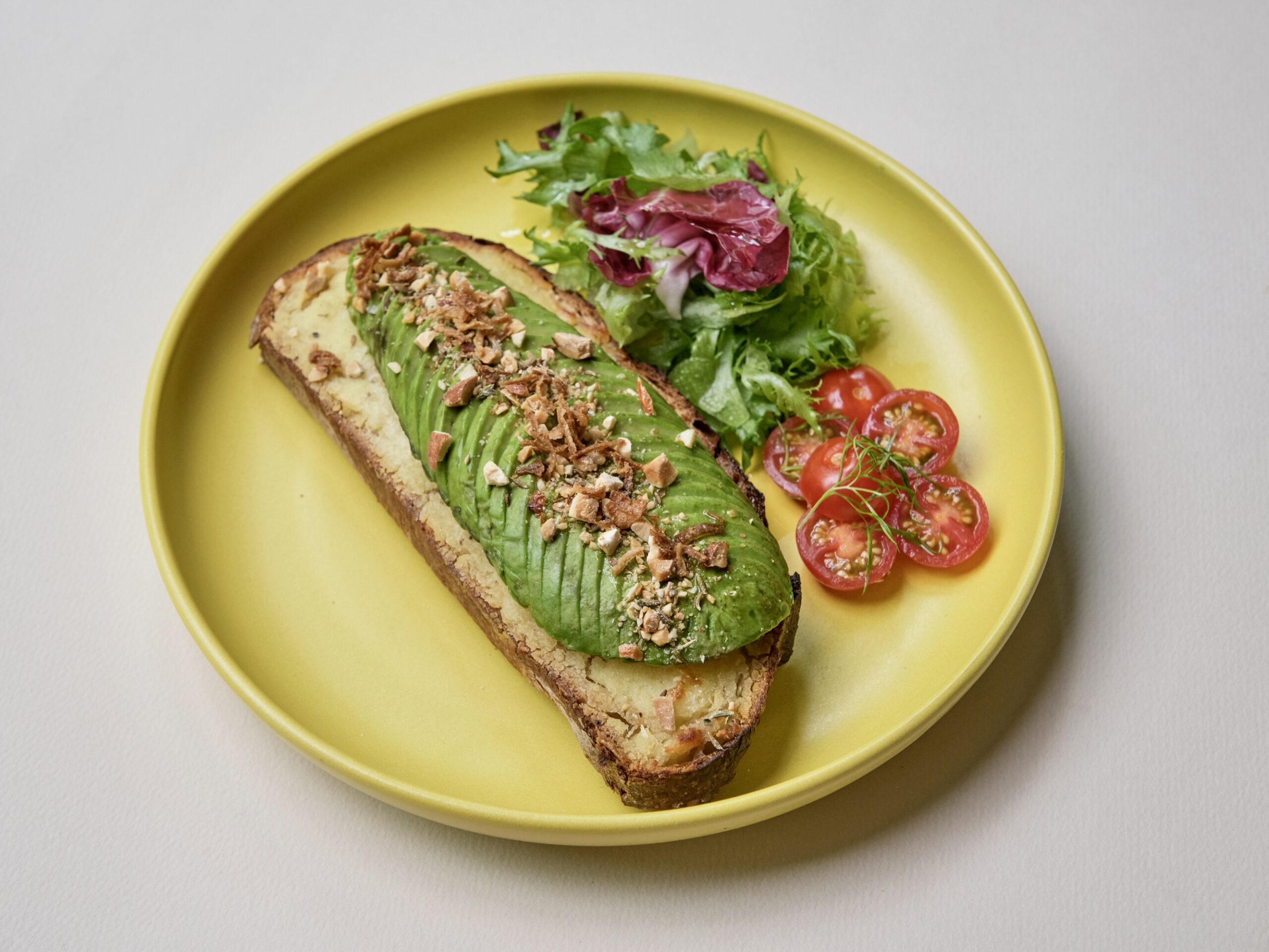 香り豊かなカンパーニュに、なめらかなマッシュポテトとアボカドをたっぷりのせ、オリーブオイルで仕上げたシンプルながら贅沢な一品です。ヴィーガン対応をご希望の場合は、マッシュポテトをフムスに変更可能です。