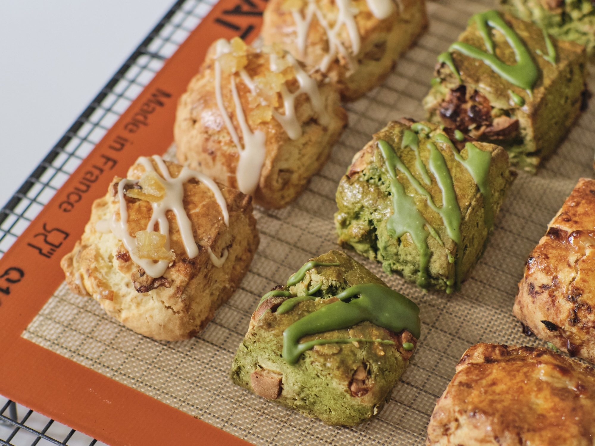 ブルーチーズのコクと飴色玉ねぎの甘みを加え、こんがりと焼き上げたスコーン。仕上げにはちみつを塗り、甘塩っぱい味わいが広がる一品に仕上げました。